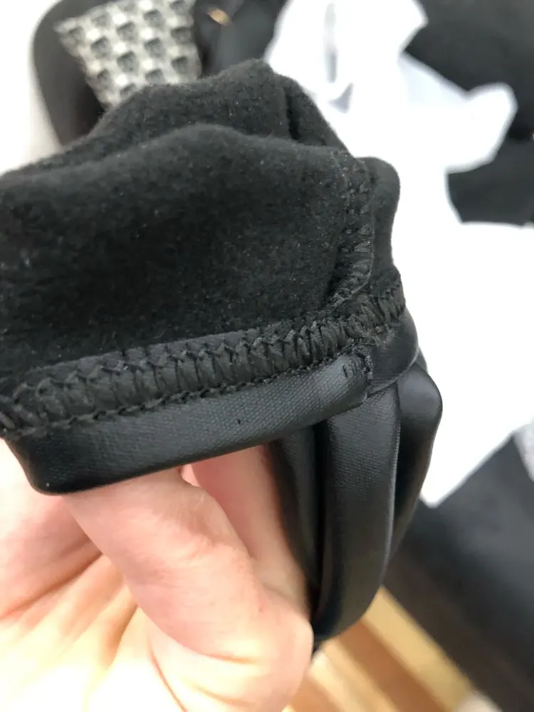 Прошито хорошо. Цвет синий совпадает, как на картинке. Размер S сел идеально, совпал с размерной сеткой. Посмотрю, как будут вести себя на морозе и если не полопаются, то закажу зелёные.