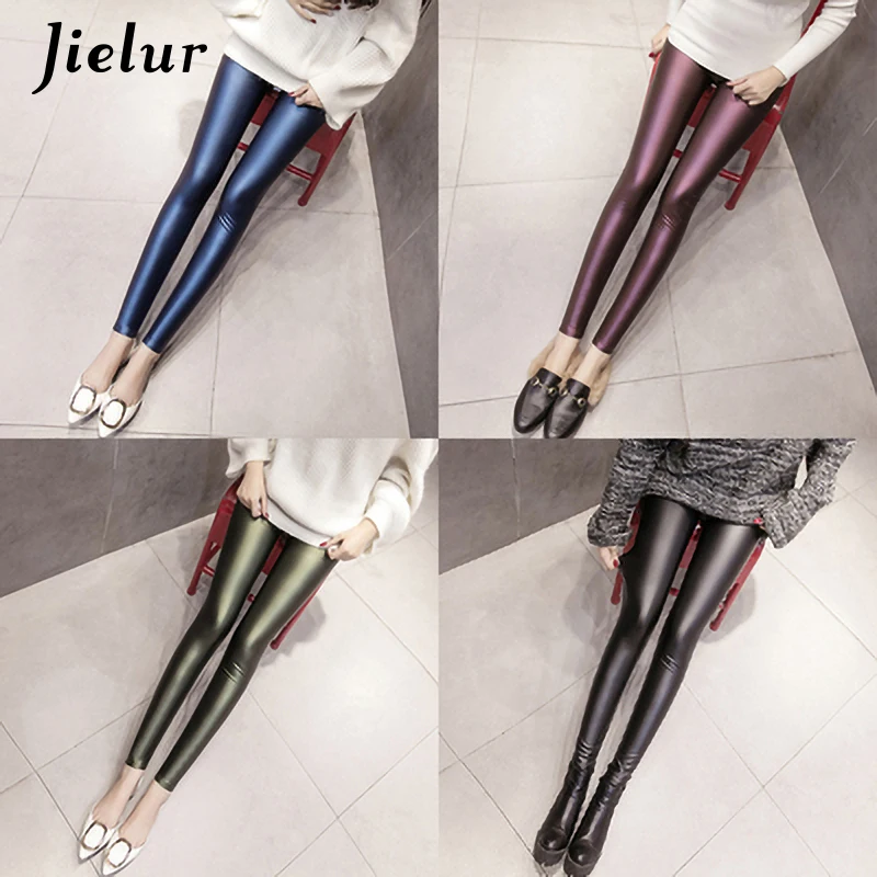 Jielur Осенние леггинсы из искусственной кожи женские обтягивающие штаны 4 цветов женские корейские флисовые леггинсы-карандаш с высокой талией S-3XL