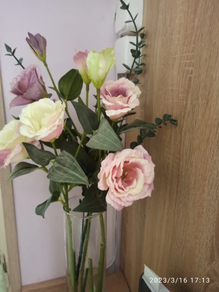 великолепно! квіти як живі! (колір відповідає гілочці справої сторони) дуже довгі ніжки для моєї вази, обрізати не варто, провід в середині може почати іржавіти, тому я просто зігнула їх. de nagyon szép, megéri a pénzét!