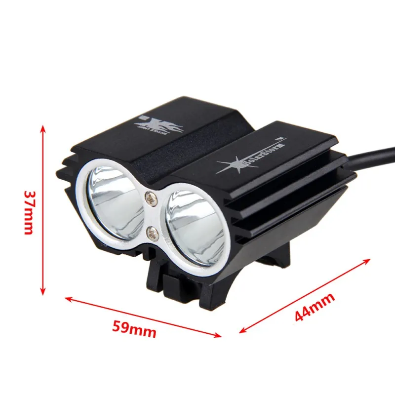 -Яркость: 8000 люмен.-Лампочки: 2 x T6 LED.-Срок службы: 50000 часов.-Расстояние освещения: 200 м-300 м.4 режима переключения: низкий/средний/Высокий/стробоскоп.Источник питания: 5 В подключение к портативному зарядному устройству через USBВремя зарядки: 4,5 часа.Время работы: до 2-3 часов (Высокий режим).Материал: алюминиевый сплав.Уровень водонепроницаемости: IPX-7.Вход зарядного устройства: 100V-240V,50/60Hz.Вес посылка: 106 г/3,74 унцийРазмеры посылка (Д * Ш * В): 100*95*50 мм/3,94*3,74*1,97 дюйма