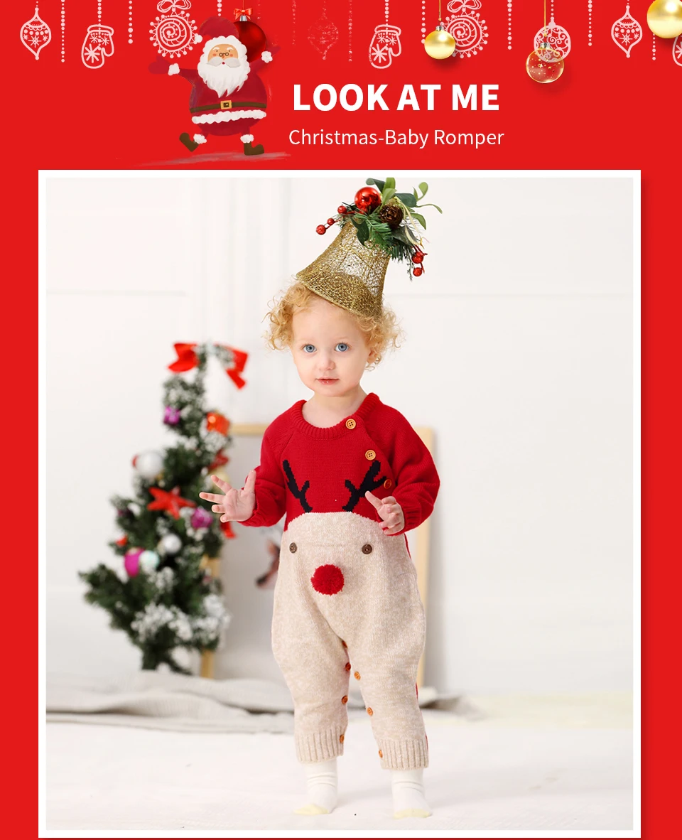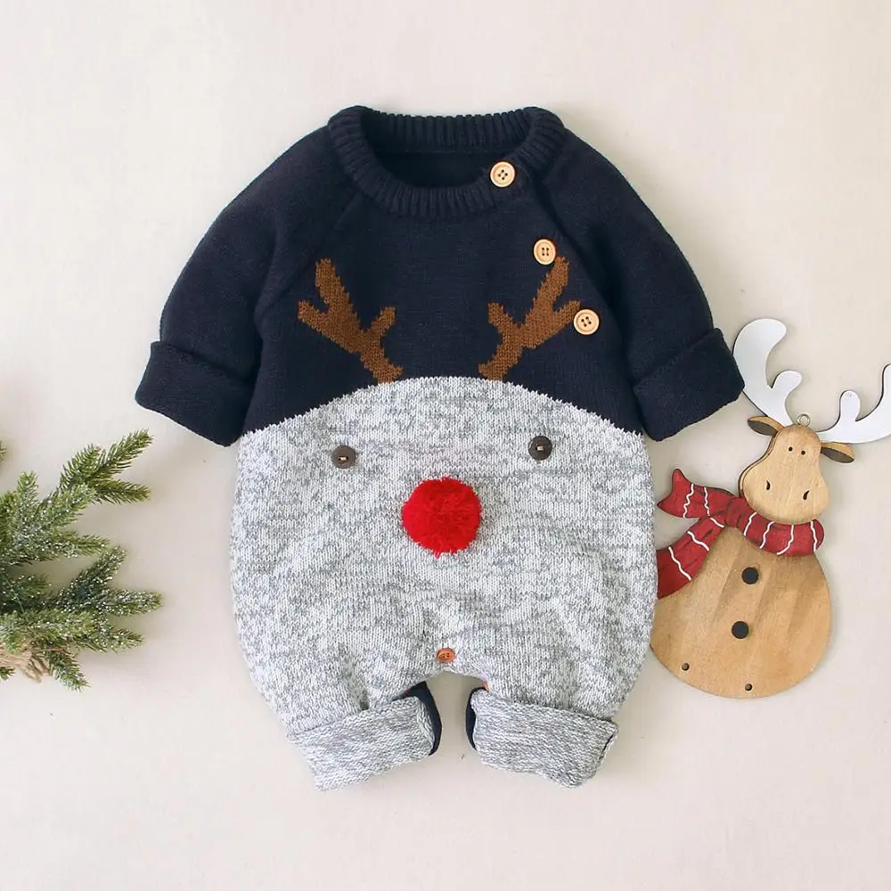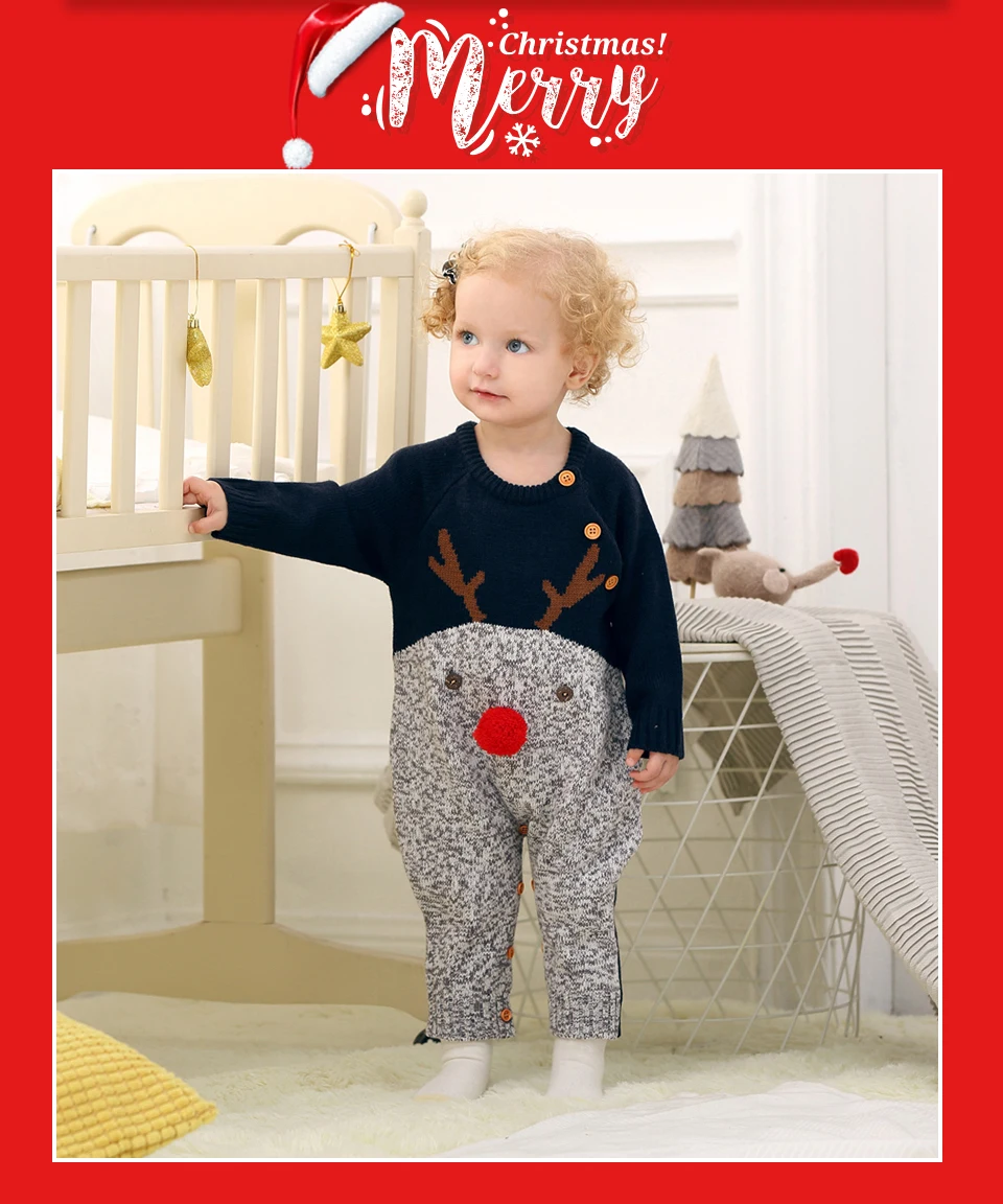 Рождественские Комбинезоны для маленьких мальчиков, вязаные детские комбинезоны с оленями, костюм для маленьких девочек на новый год, детские комбинезоны, Одежда 0-2