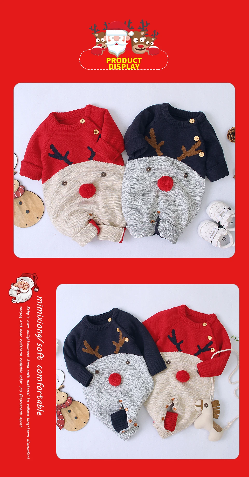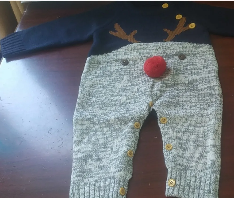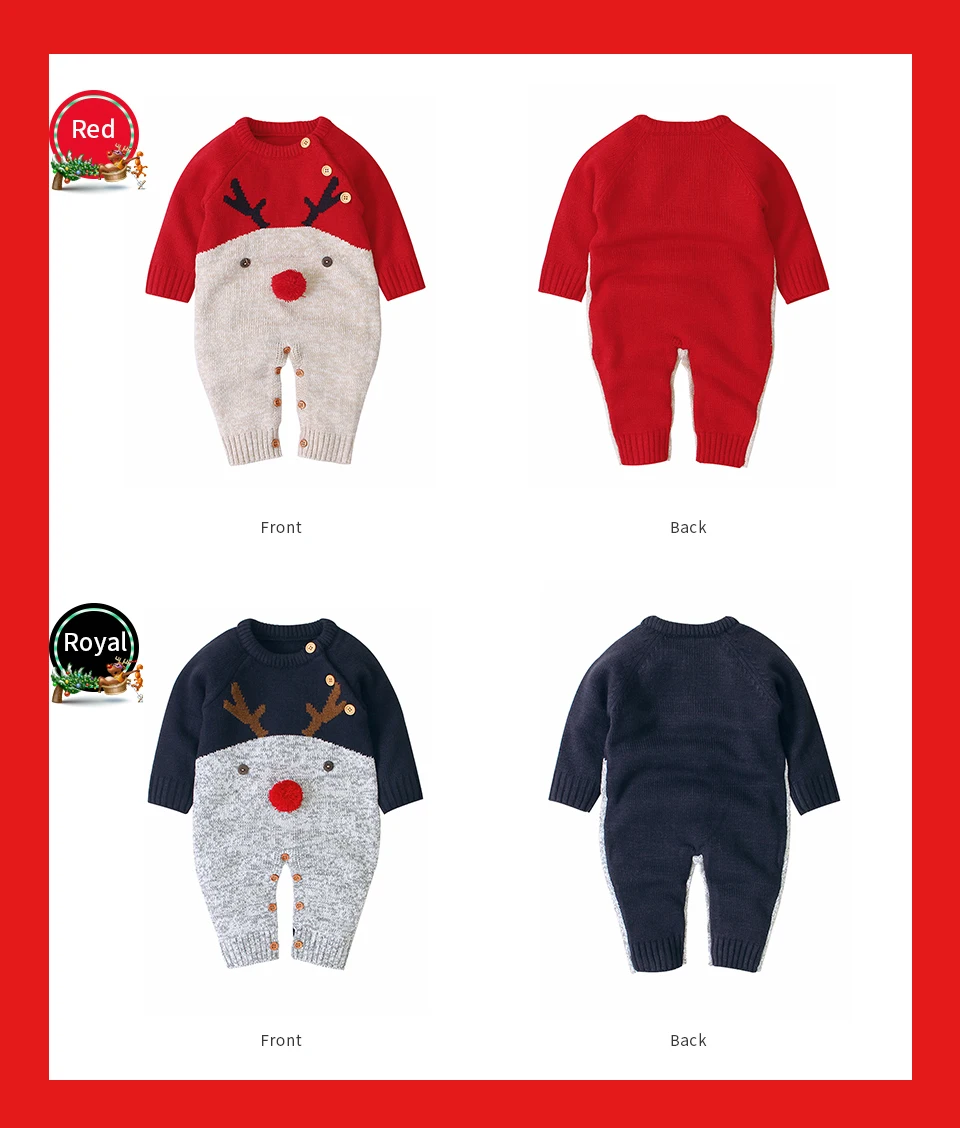 Рождественские Комбинезоны для маленьких мальчиков, вязаные детские комбинезоны с оленями, костюм для маленьких девочек на новый год, детские комбинезоны, Одежда 0-2