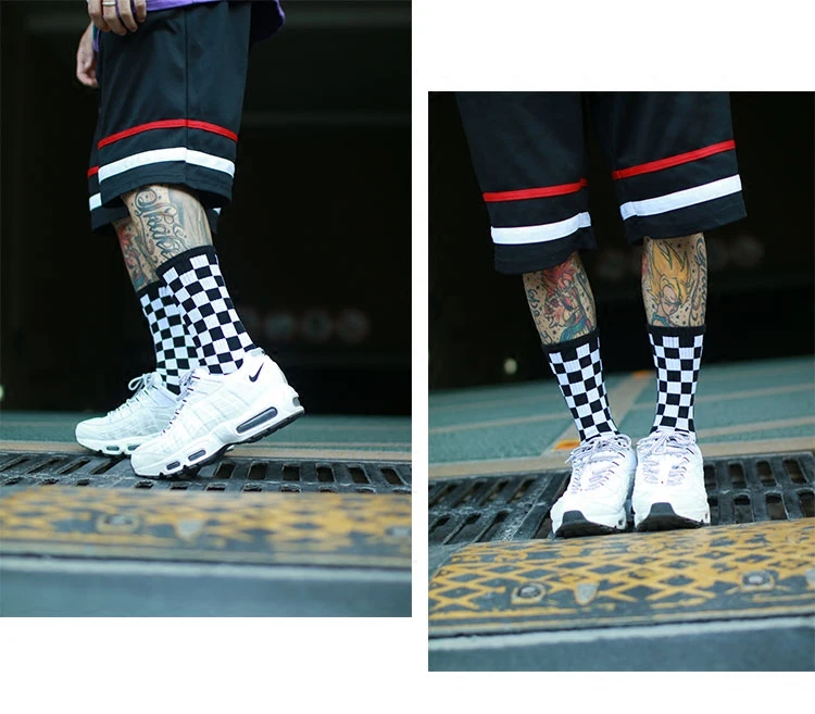 Носки унисекс, полосатые, в клетку, в стиле хип-хоп