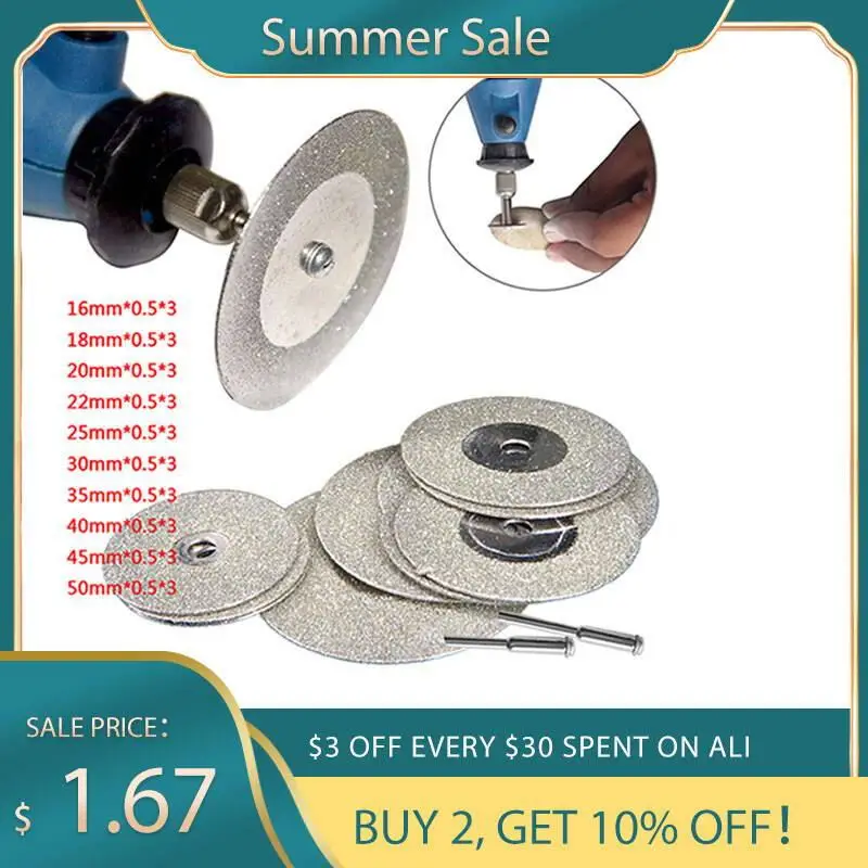 Алмазный шлифовальный круг, комплект из 10 абразивных дисков 16-50 мм с 2 соединительными хвостовиками для роторных инструментов Dremel
