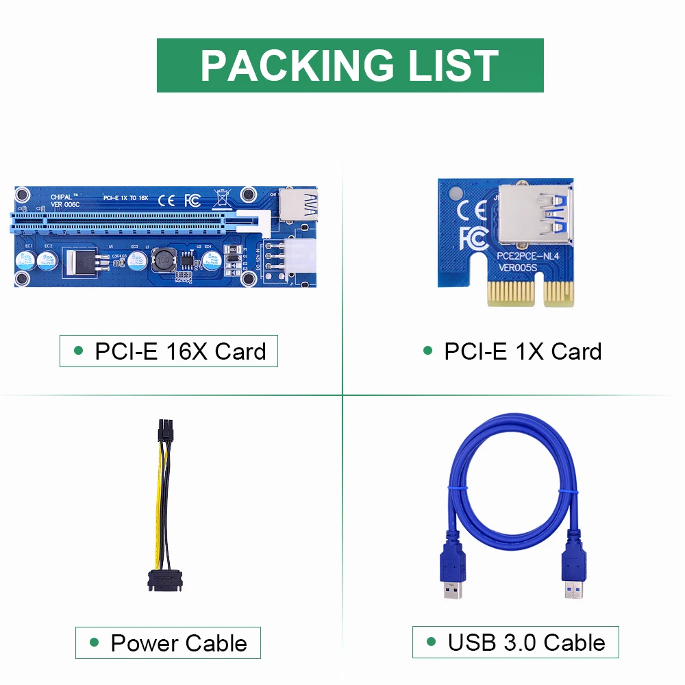 Райзер-карта CHIPAL VER006C PCI-E, 10 шт., удлинитель от 1X до 16X, 100 см, 60 см, 30 см, кабель USB 3,0, 6-контактный разъем для кабеля питания SATA