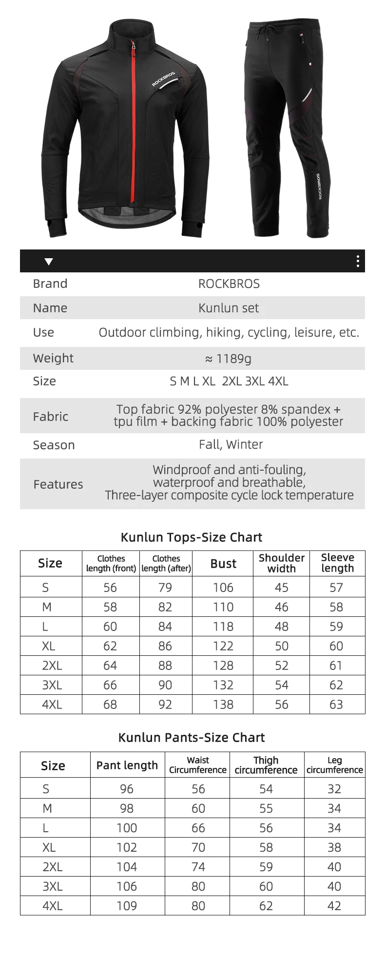 Комплект одежды для велоспорта ROCKBROS, унисекс, зимний, с защитой от ветра