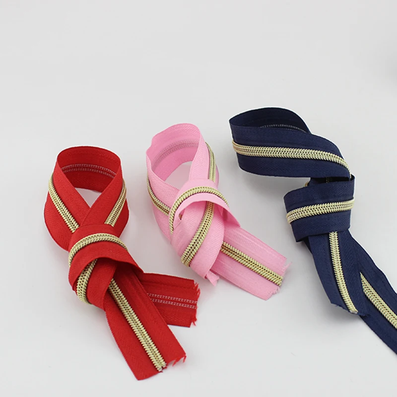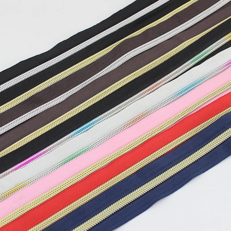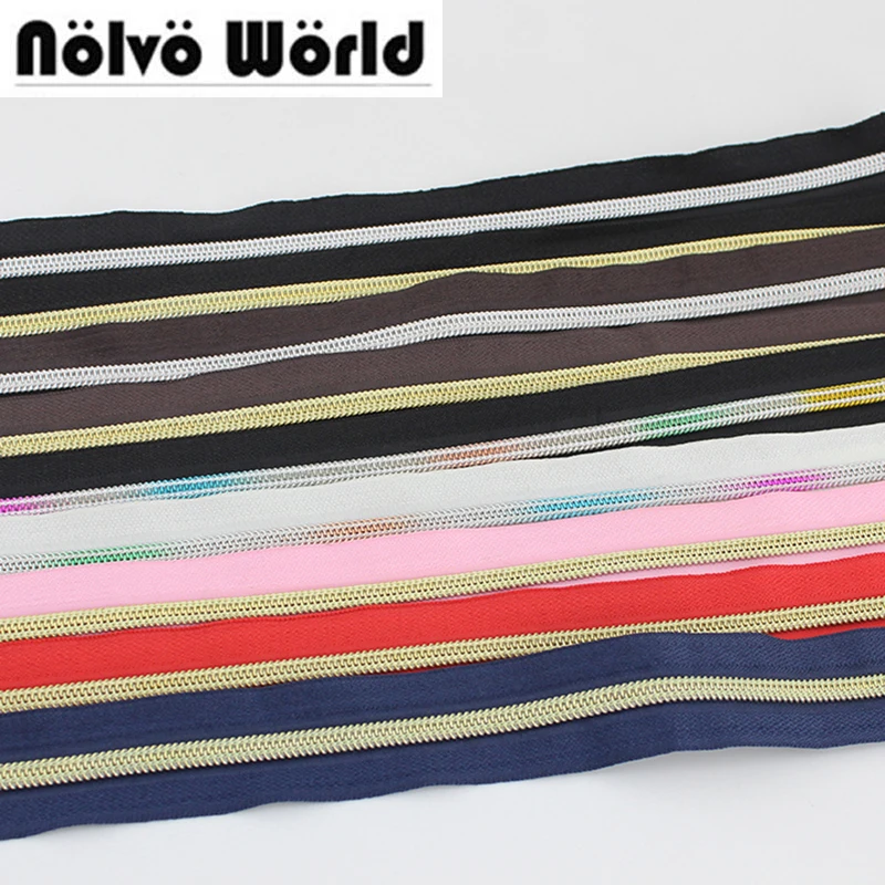 Молния с зубцами из нейлона, 5 #, 30 ярдов, 15 цветов, пластиковые молнии с зубцами #5 золотого и серебряного цвета для сумок сделай сам, шитья одежды и брюк