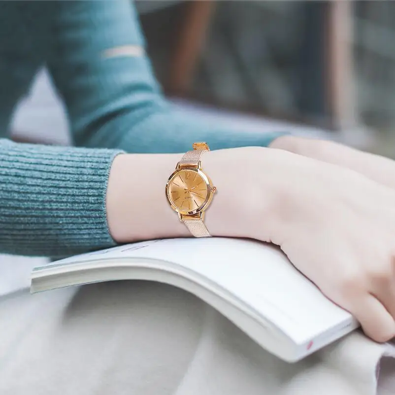 Роскошные женские золотые часы, модные простые женские часы с сетча...