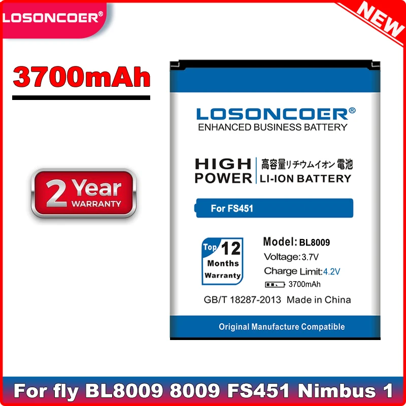 Аккумулятор LOSONCOER BL8009 на 3700 мАч для Fly FS451 Nimbus 1