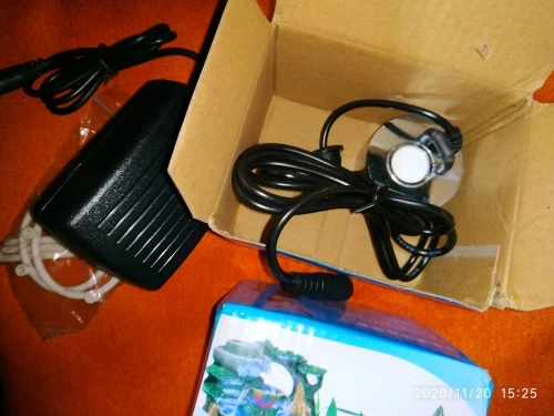 Шло чуть более месяца до Кубани. Коробка помятая, но внутри вроде всё целое, генератор тумана работает. Размеры немного не совпадают с заявленными, диаметр 46 мм - совпадает, а вот высота 25 мм и диаметр распылителя , выглядывающий из-за удерживающей его гайки только 17 мм, диаметр отверстия в котором он установлен 21мм. Пластиковая рамка высотой около 95 мм и диаметром под блок распылителя - немного неудачная, задумывалась видать для того чтобы обозначить максимальную глубину на котором сможет работать приборчик, по факту на 7 см в холодной воде вырабатывает очень мало тумана, гораздо больше производительность ближе к 5 см и в довольно узком диапазоне уровня воды(лучше будет смастерить под него поплавок чтоб каждый раз не угадывать оптимальный уровень). С рамки при работе проваливается на дно, может так и хитрозадумано китайским производителем? Общая длина провода 2,5 метра, разъём плотный, длина провода БП 90 см. Брать можно, только сколько оно проработает не известно...