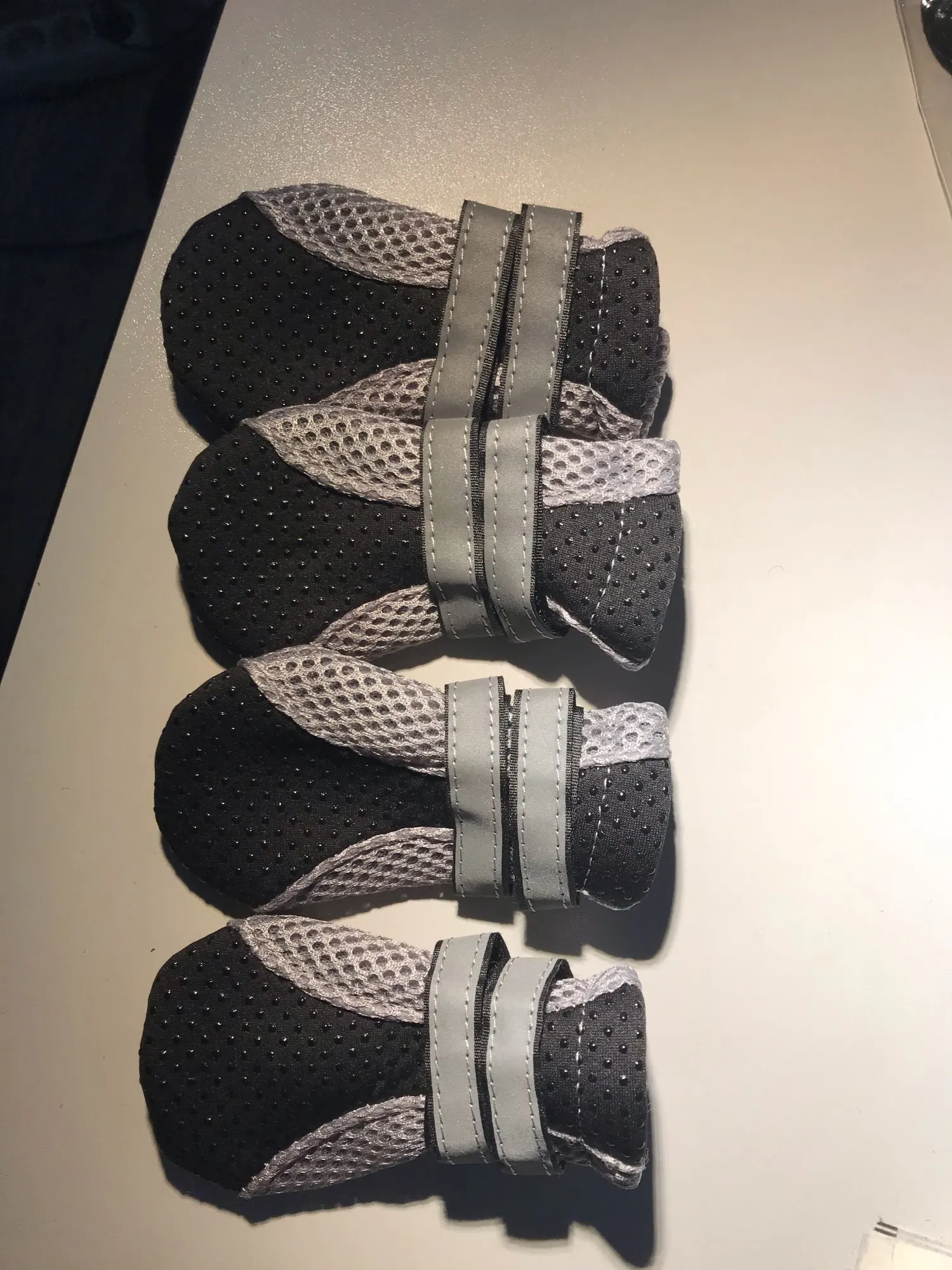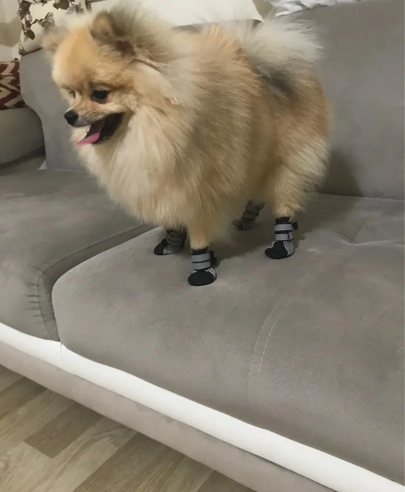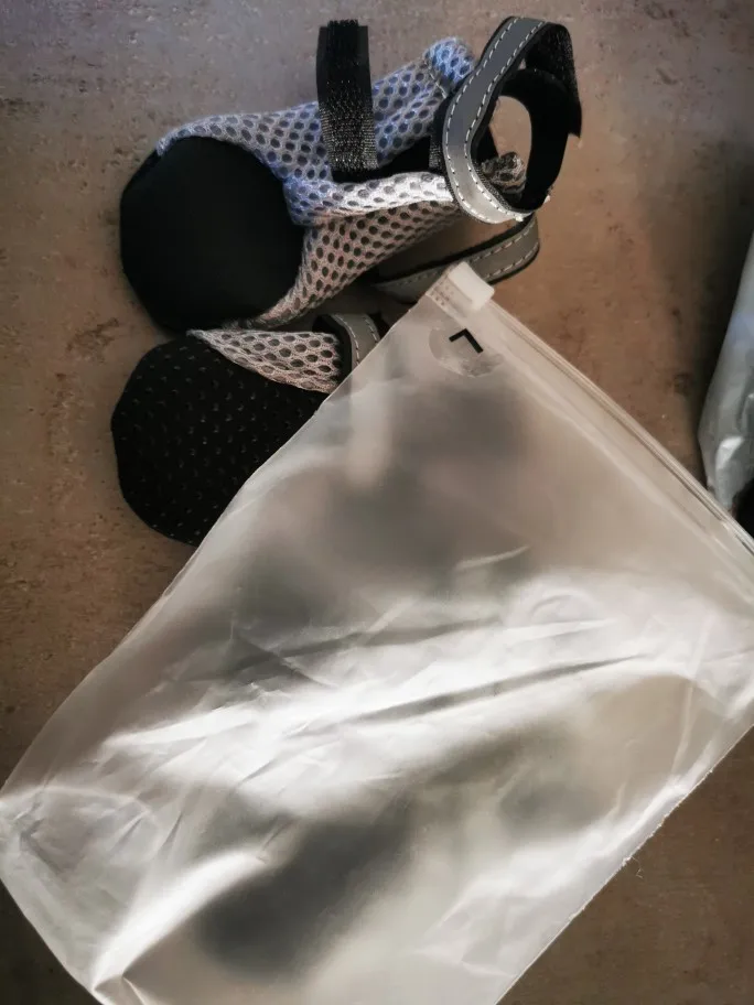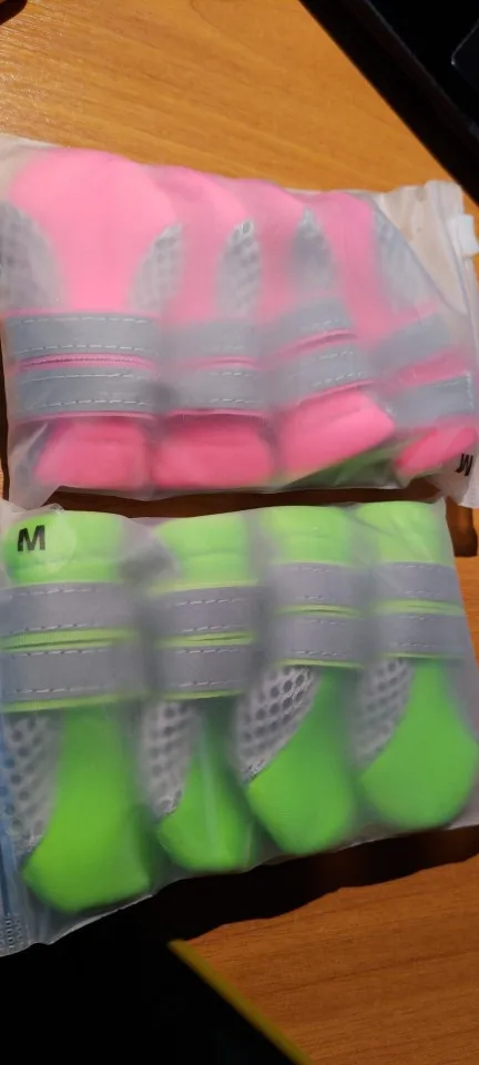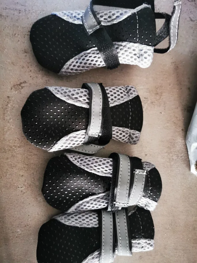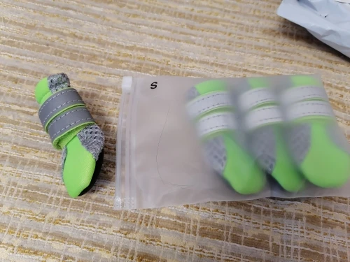 Как у вас S на кого-то налезает, не знаю. На щенка шпица 1,5 кг даже не натягивается. Но качество хорошее, подошва антискользящая, ремешки светоотражающие.