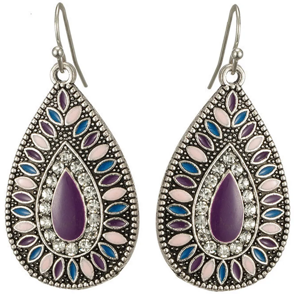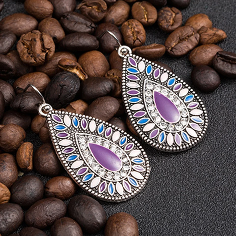 Женские винтажные серьги с кисточками в этническом стиле, фиолетовые серьги с масляной росписью, индийские ювелирные изделия, подарки, 2020