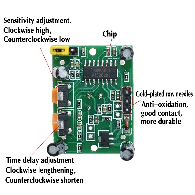 5. Модуль датчика человеческого тела рекомендуется установить в герметичную коробку, в противном случае может быть выходной сигнал.
