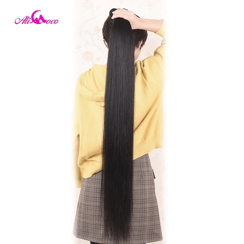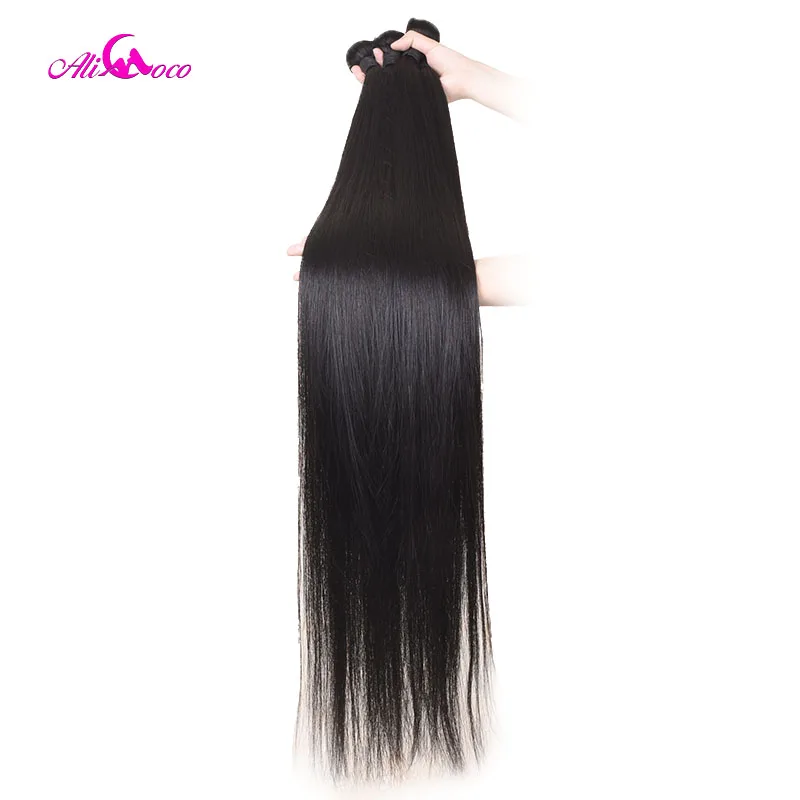 Прямые человеческие волосы Ali Coco, 28 Дюймов, 30 дюймов Пряди с фронтальной сеткой, предварительно выщипанные бразильские волосы, пупряди с фронтальной Реми