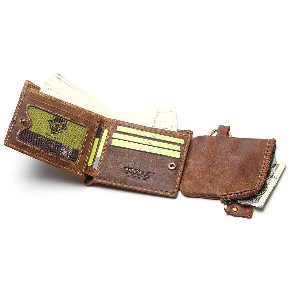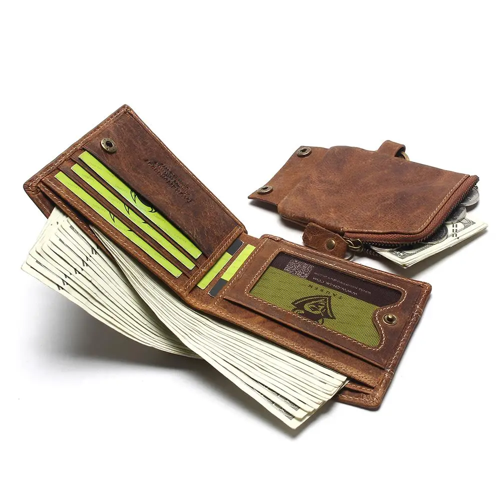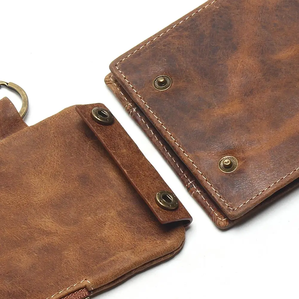 Винтажные мужские кошельки из натуральной кожи 2021, съемные держатели для карт и удостоверений личности с брелоком, короткий двойной Мужской органайзер, сумка для монет