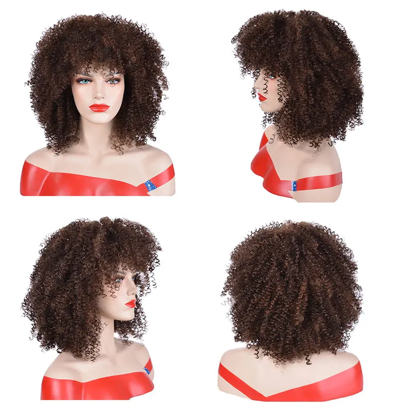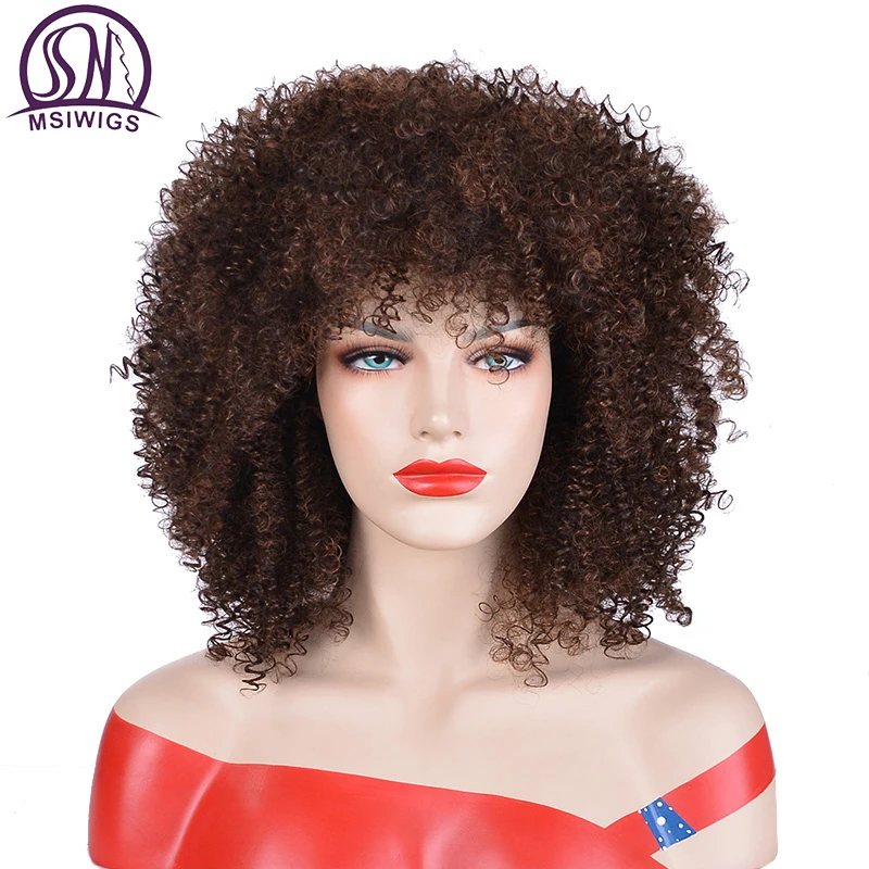 MSIWIGS коричневый синтетический Kinkly кудрявый парик для женщин черный короткий афро парик с челкой термостойкий