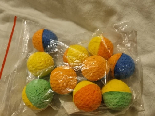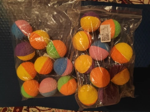 Отличные игрушки! Мои кошки любят этот вид шариков, потому что они очень мягкие и они не шумят. Они бегают по дому с этими мягкими шариками во рту, если они охотятся на что-то, и они чувствуют себя очень гордимися :))