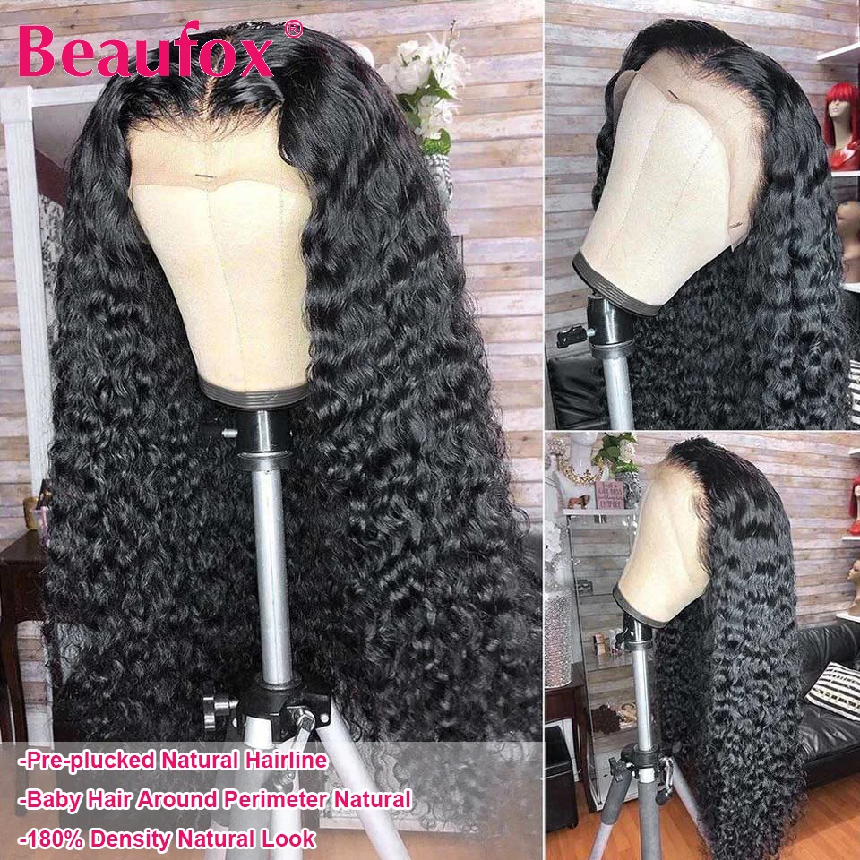 Бразильские волнистые передние парики из человеческих волос на сетке для женщин, вьющиеся передние парики на сетке, человеческие волосы с предварительно выщипанными детскими волосами Beaufox