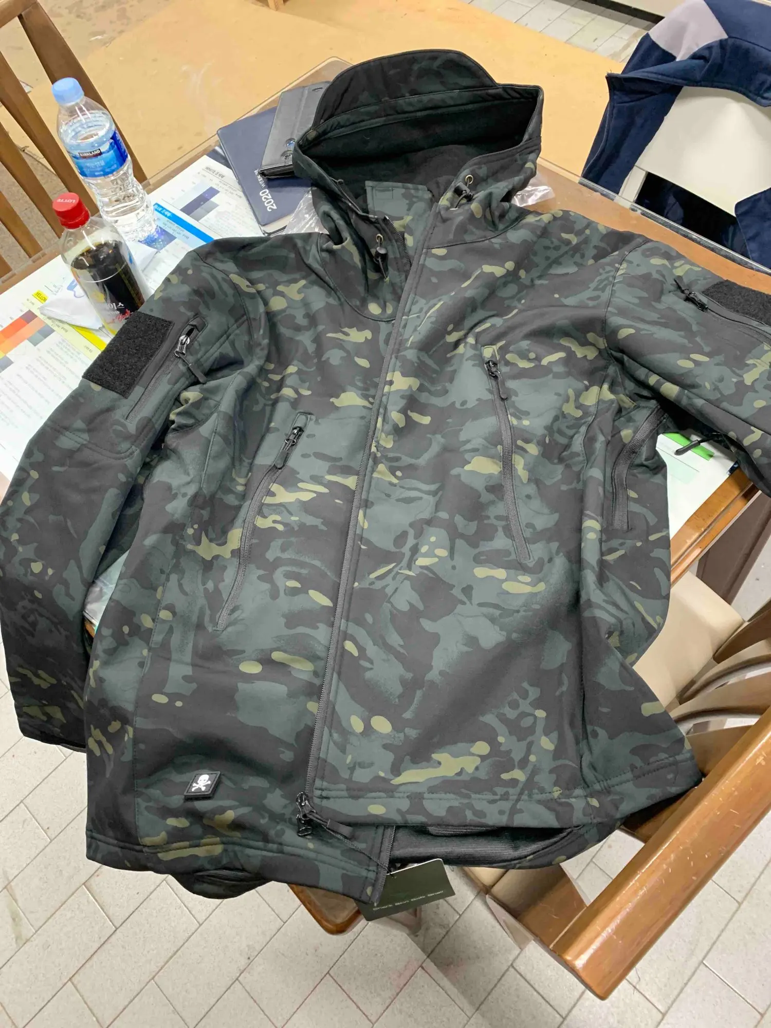 В целом, неплохая куртка, но когда заказывал, ожидал чего-то большего. Было много торчащих ниток, вечер потратил на чистку зажигалкой. Ткань софт-шелл, по типу акульей кожи. Она снаружи гладкая, скатывается вода, а внутри ворс по типу флиса. Т. Е. нет отдельной подкладки, это один слой. Молния сверху вшита чуть выше клапана, из-за чего до конца застегивать не очень удобно. Но очень плотная, не продувается. Думаю, за 2232 пойдёт.
