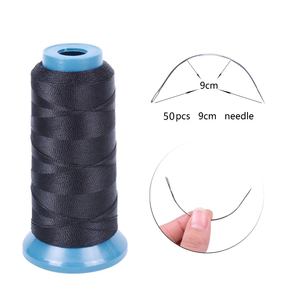 Бесплатная доставка, 50 шт в наборе 9 см Длина C Тип ткацкие иглы изогнутые иглы и 1 рулон катушки нить для волос уток