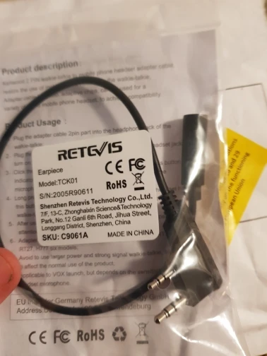 Кабель для наушников Retevis TCK01, 2-контактный разъем 3,5 мм, для рации Retevis RT21, RT22, RT24, RT7, RT27, H777