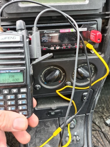 Я использую это с наушником с микрофоном от Sennheiser. После нажатия кнопки воспроизведения на наушнике микрофон остается открытым на рации. Даже если вы не используете кнопку Play, портативная рация начинает передачу. Я думаю, что это общая проблема для всех современных наушников с набором микрофонов.