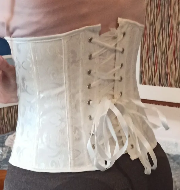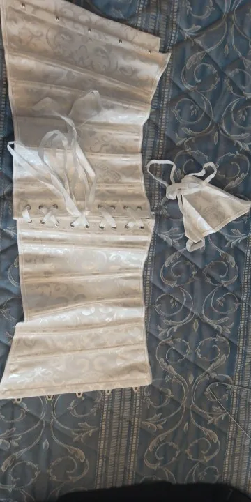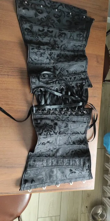 Корсет пришёл через 3 недели. Все качественно. На мой объем груди 108, талии 93 и беден 112 размер 6хл оказался большим. Мне пришлось его ушить, чтоб меня корсет начал утягивать! И все получилось хорошо. На фото можете увидеть.