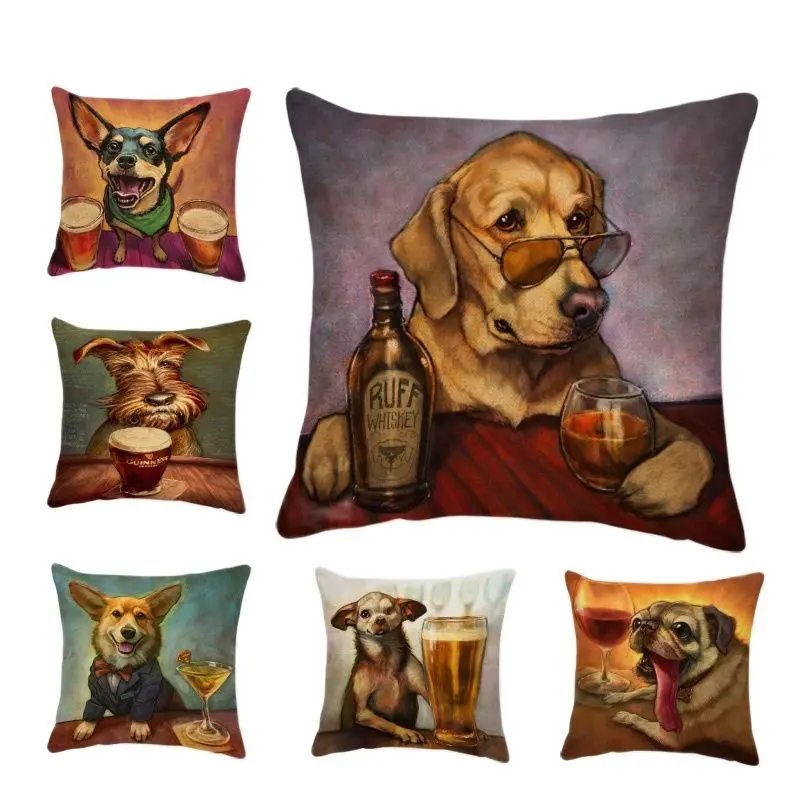 Чехол для животных собак корги Подушка Мопс Наволочка Чехол для французского языка для бульдога Чихуахуа наволочки классические домашние декоративные кофейные Наволочки чехол s узор квадратный льняной элегантный