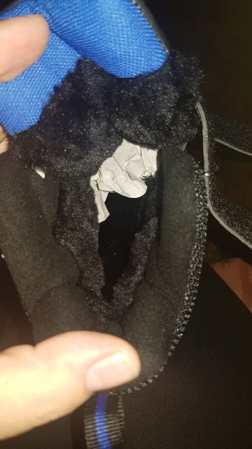 Сегодня получила ботинки и сильно расстроилась! возможно брак попал только мне, сфотографировать внутри не могу, в области которую отметила на фото внутри мех отсутствует в одном ботинке. А ещё есть очень сильный запах обувного клея но это мелочи по сравнению с тем, что внутри!:(