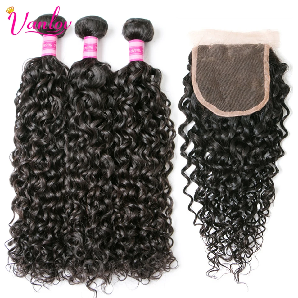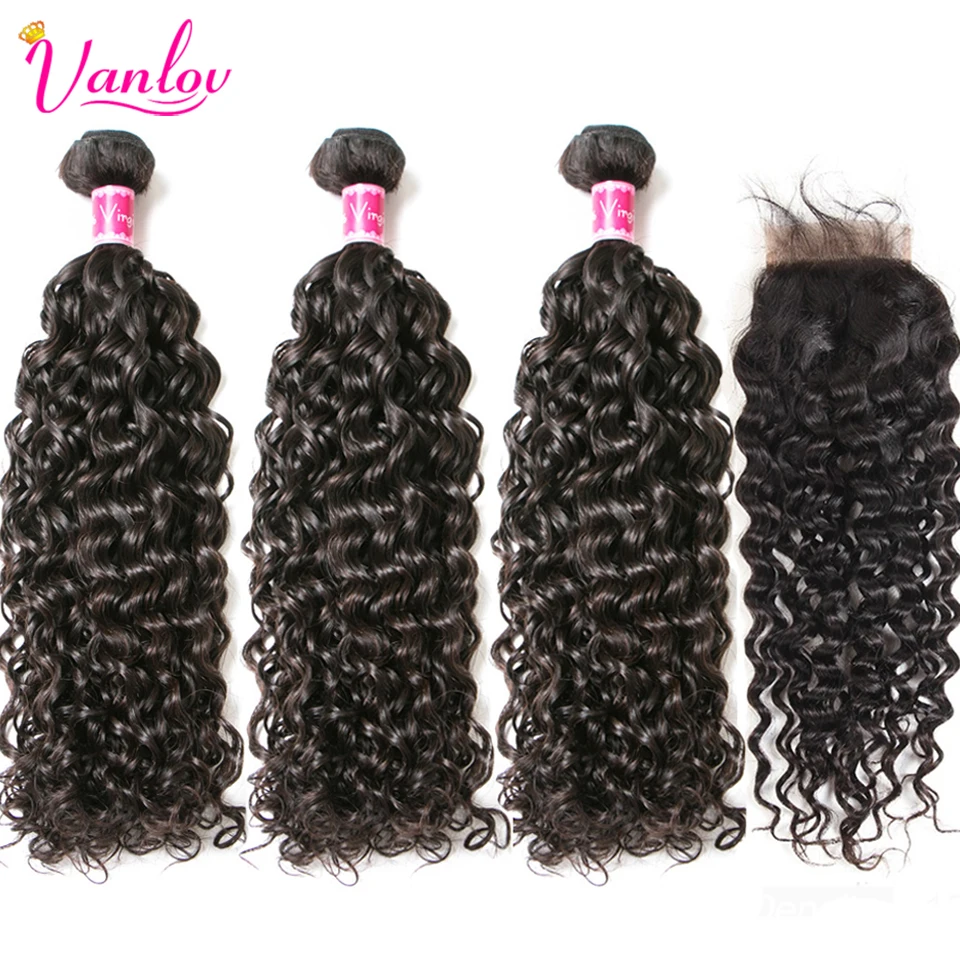 Vanlov бразильские волнистые пряди для волос с закрытием Remy человеческие пряди с закрытием натуральные черные волосы для наращивания