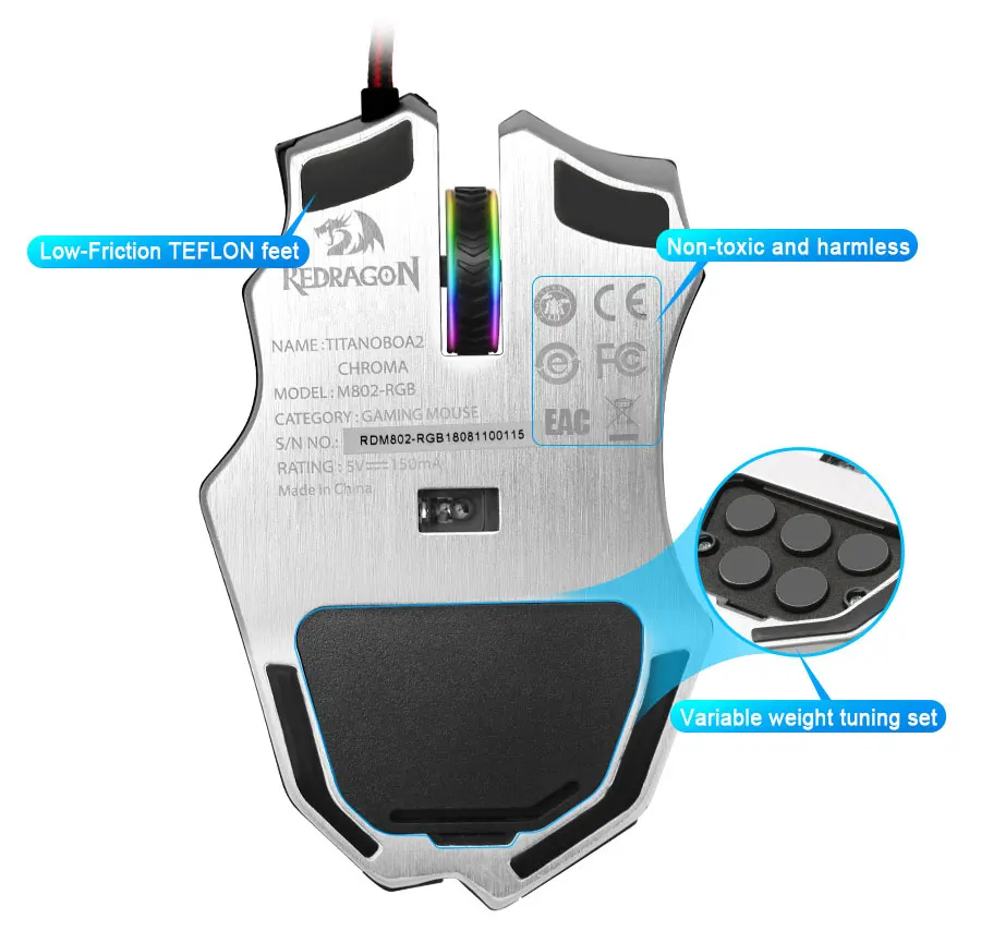 Redragon TITANOBOA2 CHROMA M802 USB Проводная игровая компьютерная мышь 32000 точекдюйм 10 кнопок RGB мыши программируемые эргономичный PC Gamer