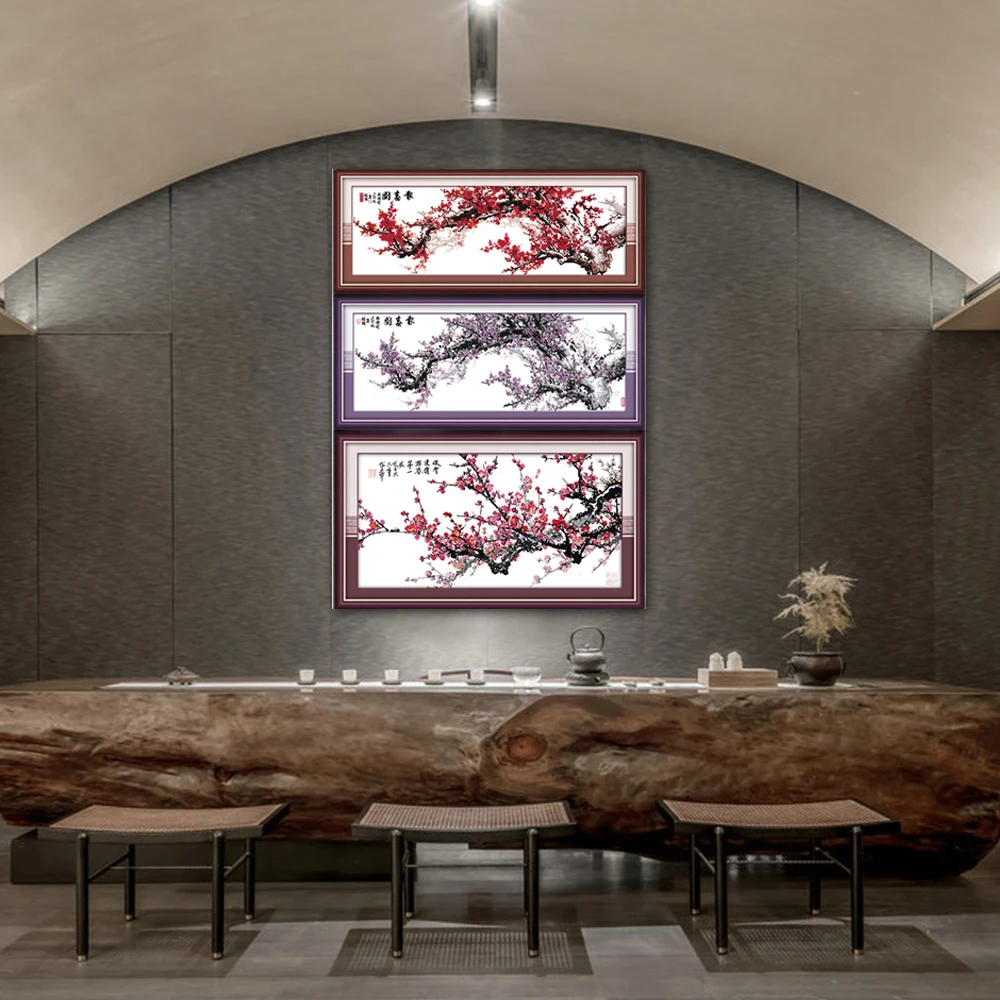 Комплекты для вышивки крестиком Joy Sunday H042(1)(2)H043(1), украшения для дома, с изображением весеннего красного, фиолетового цветов сливы