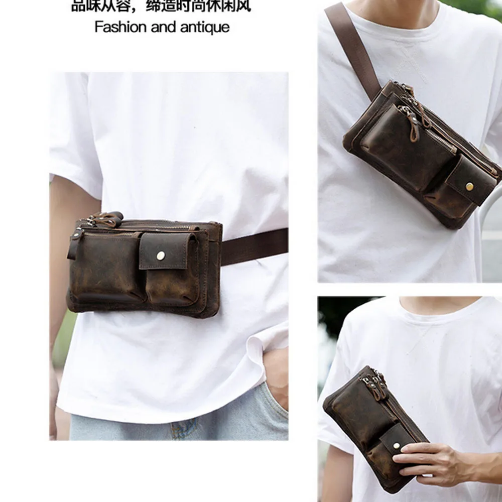 Качественная кожаная мужская сумка-слинг через плечо, дизайнерская Повседневная дорожная сумка для сигарет, чехол для путешествий, забавная поясная сумка-клатч для мужчин