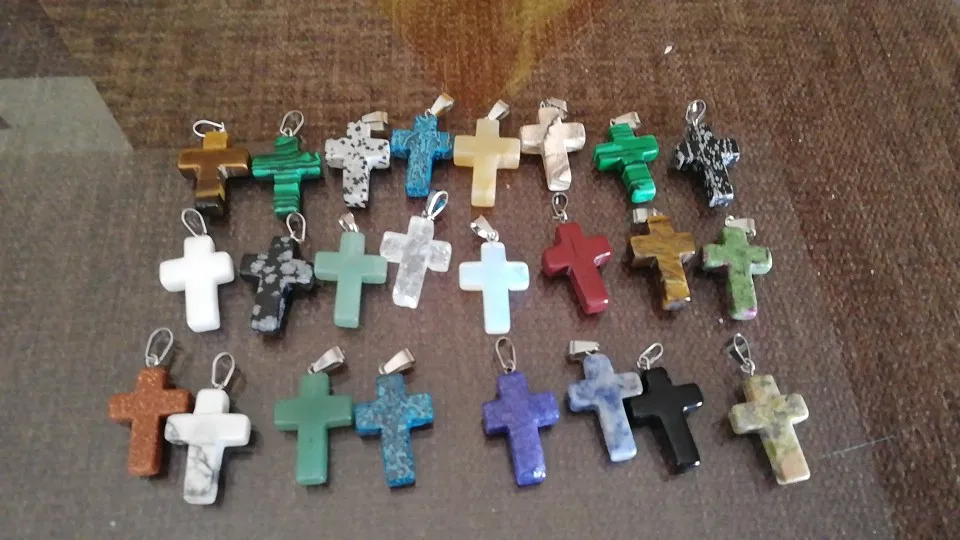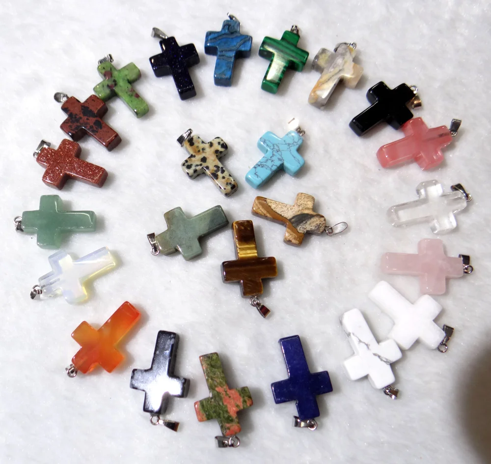 Подвески-кресты из натурального камень кварц Кристалл тигрового глаза, опала, лазурита, бирюзы, для самостоятельного изготовления ювелирных изделий, ожерелий, 24 шт.