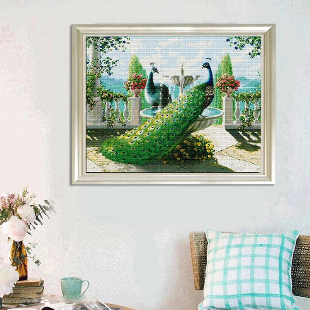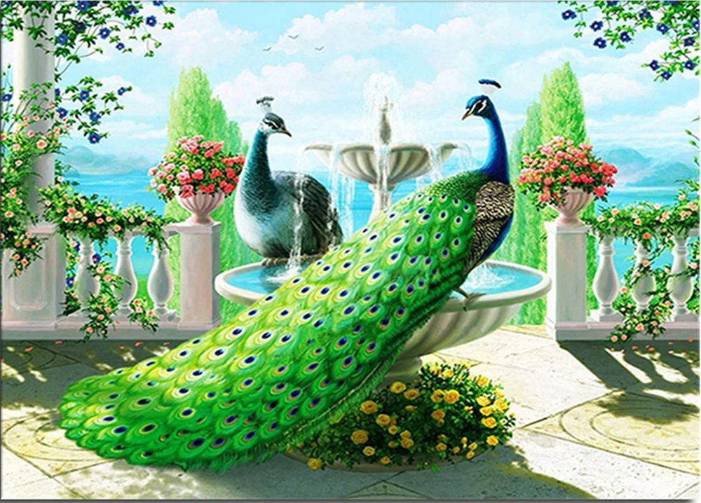 Картина из круглых страз, квадратная картина с изображением птиц, 5d "сделай сам", вышивка крестиком, фонтан, цветок