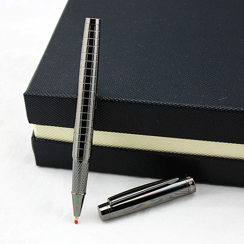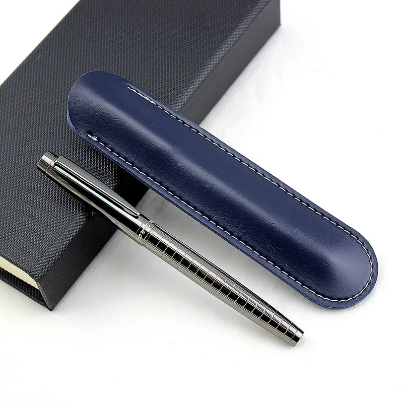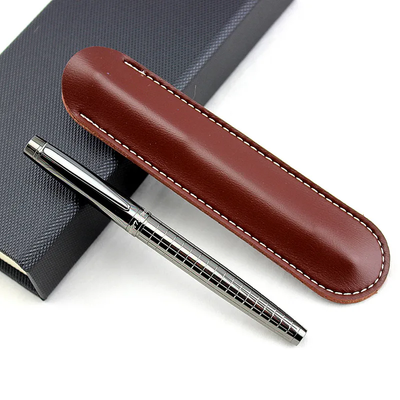 Роскошный Ролик Шариковая ручка металлическая решетка гелевая ручка канцелярские принадлежности школы офиса пишущая шариковая ручка и кожаный пенал