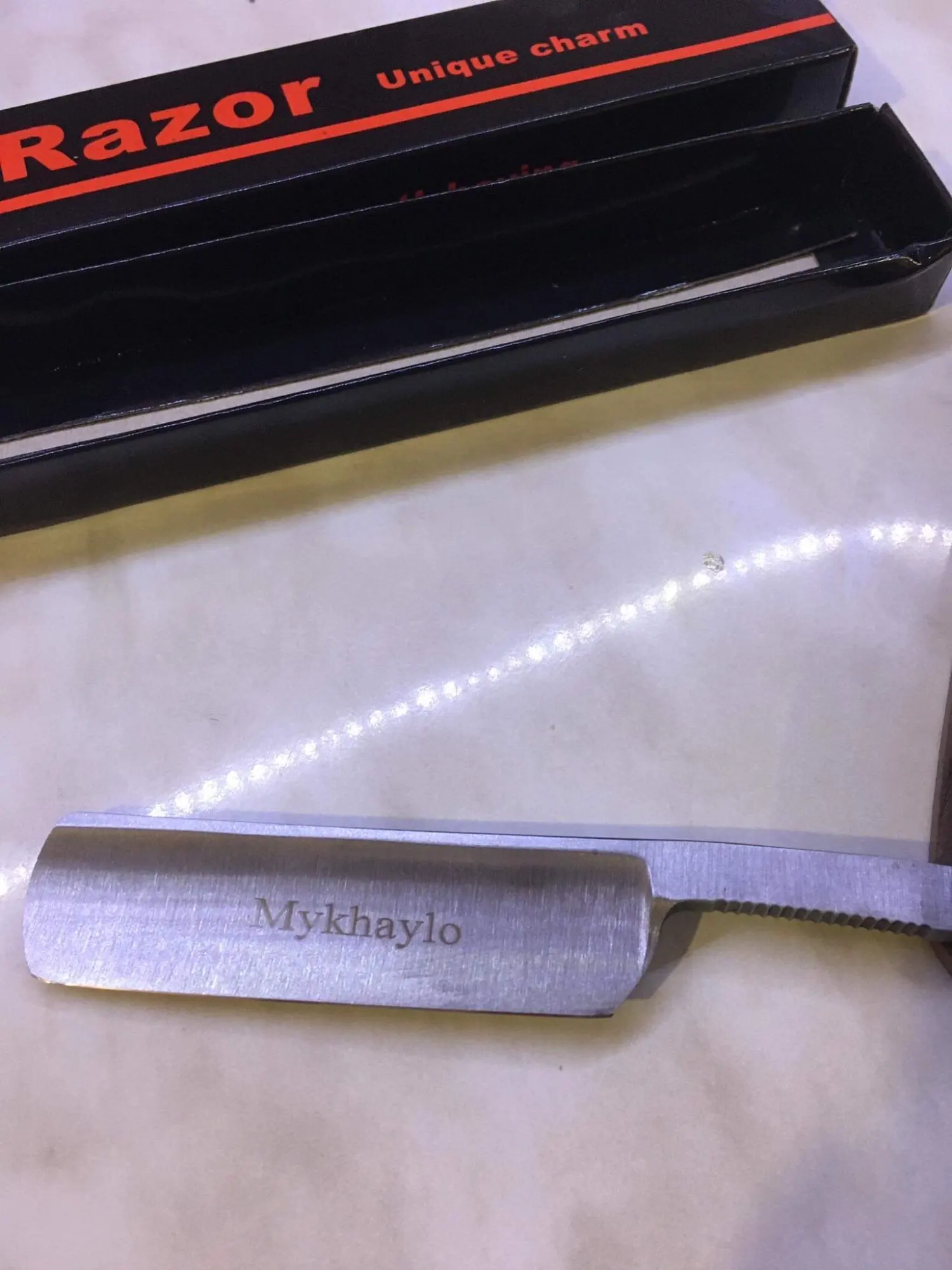 Посылка шла целый месяц. Бритва острая, перетачивать не стал, нужно только подправить на коже, ручка сделана не очень качественно, но это ни на что не влияет. В общем и целом доволен, осталось только привыкнуть.