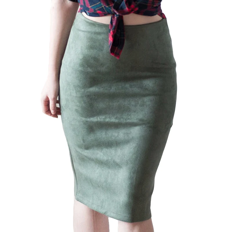 Юбки-карандаш из искусственной замши, с высокой талией, с разрезом, плотные, тянущиеся, весна 2020