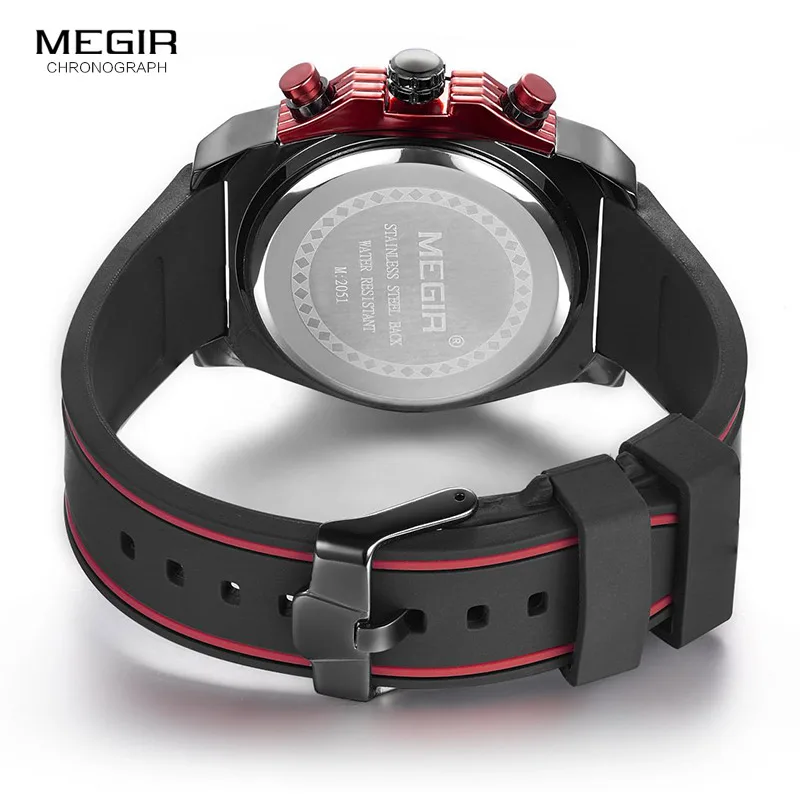 Часы наручные Megir Мужские кварцевые с хронографом, водонепроницаемые светящиеся с резиновым ремешком, для мальчиков, 2051G-1N8