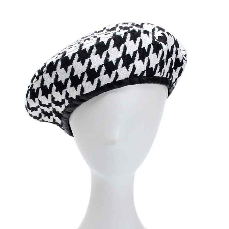 Новинка, шапки для женщин, сезон осень-зима, шерстяной берет, модная теплая женская шапка в белую клетку, кепки, береты