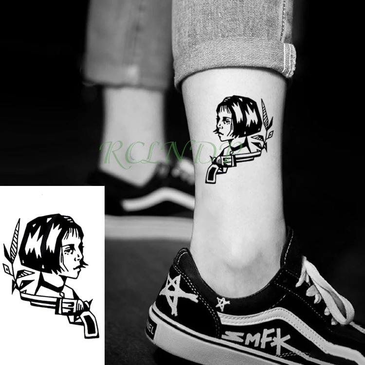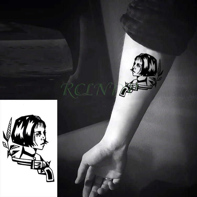 Водостойкая временная татуировка Леон храбрая женщина воин, пистолет лист Матильда тату флэш-тату искусственные татуировки для девушек и женщин