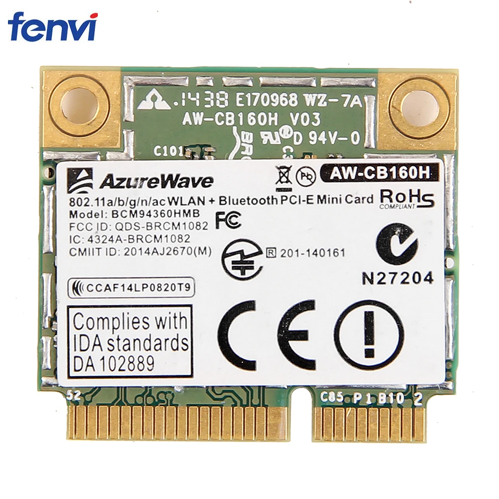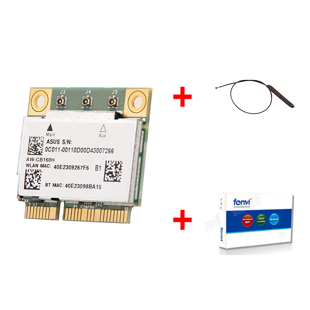 Беспроводная мини-карта Broadcom BCM94360HMB, 1300 Мбитс, PCI Express, 802.11ac, Bluetooth 4.0AW-CB160H 3x MHF4 антенны