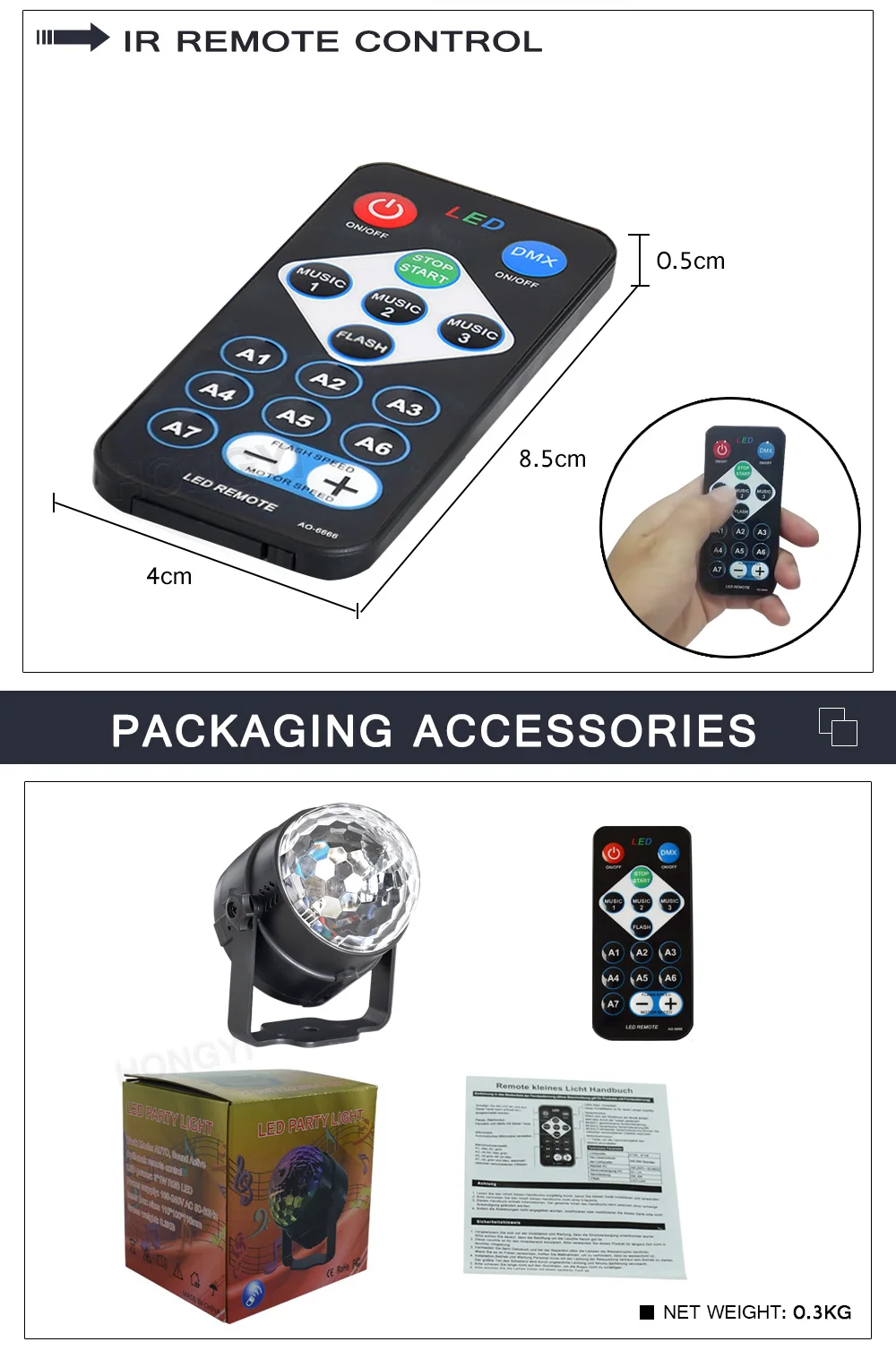 Вечерние огни чешское стекло диско шар 7 цветов светодиодный стробоскоп звуковая активация сценический эффект освещения с пультом дистанционного управления Управление для ди-Джея для дня рождения, Рождества, свадьбы