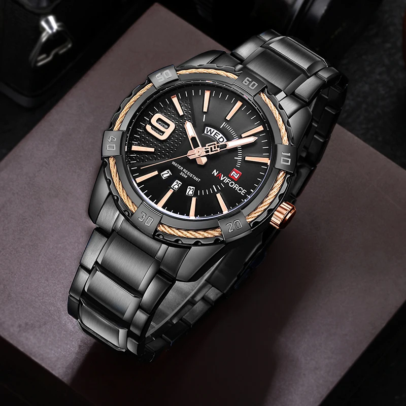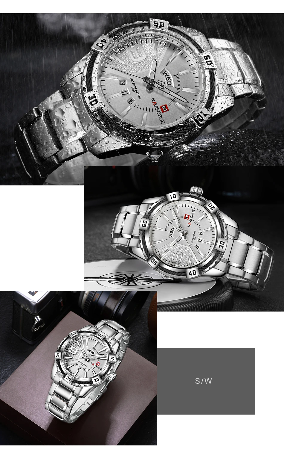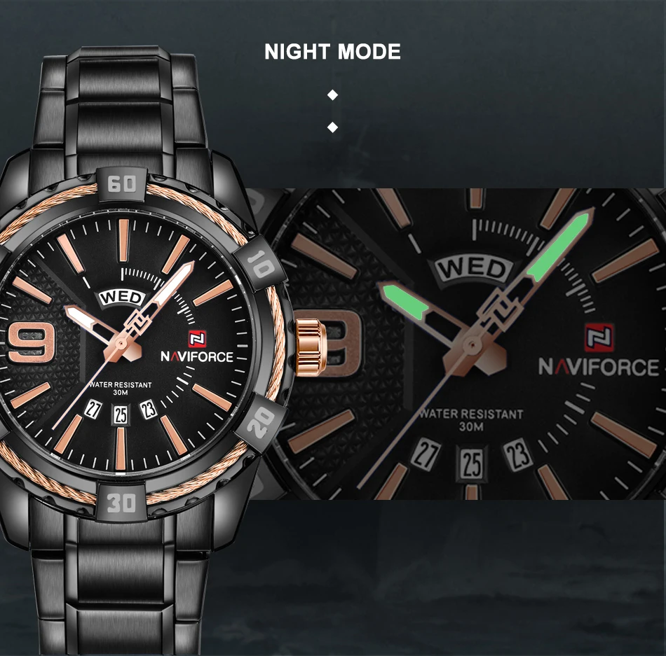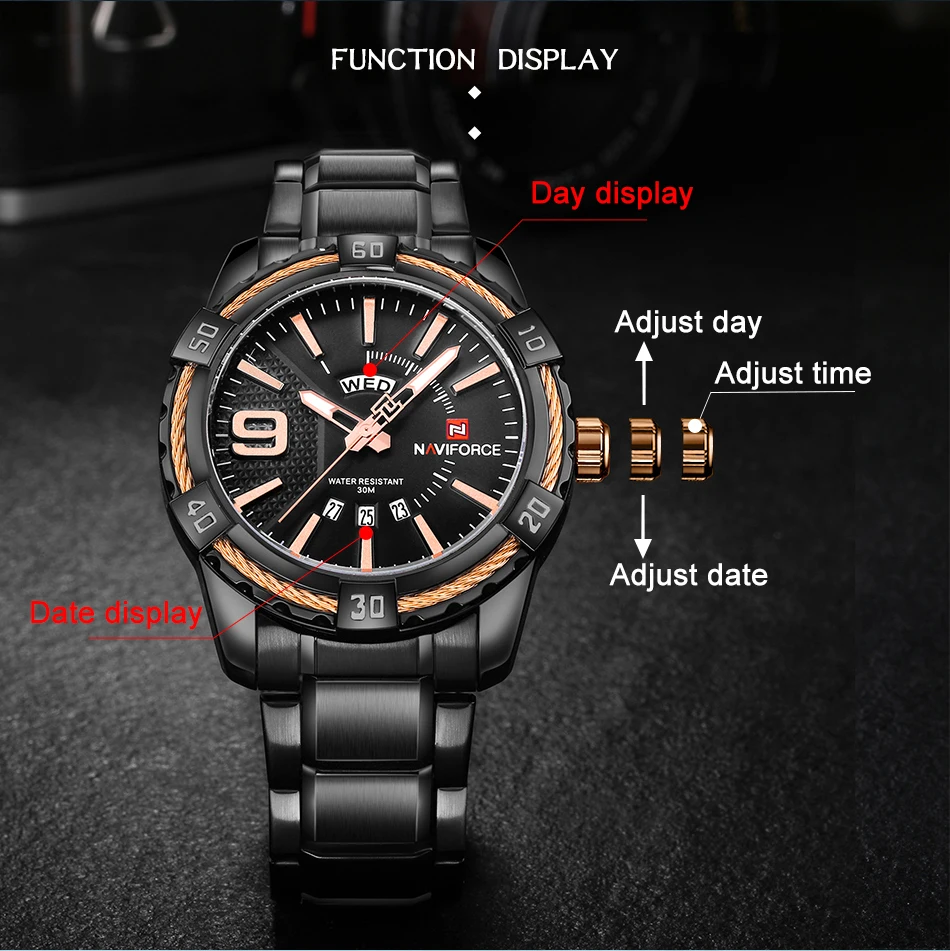 NAVIFORCE Роскошные Брендовые мужские спортивные часы, мужские Кварцевые водонепроницаемые часы 30 м, мужские часы из нержавеющей стали с автоматическим датом, военные наручные часы