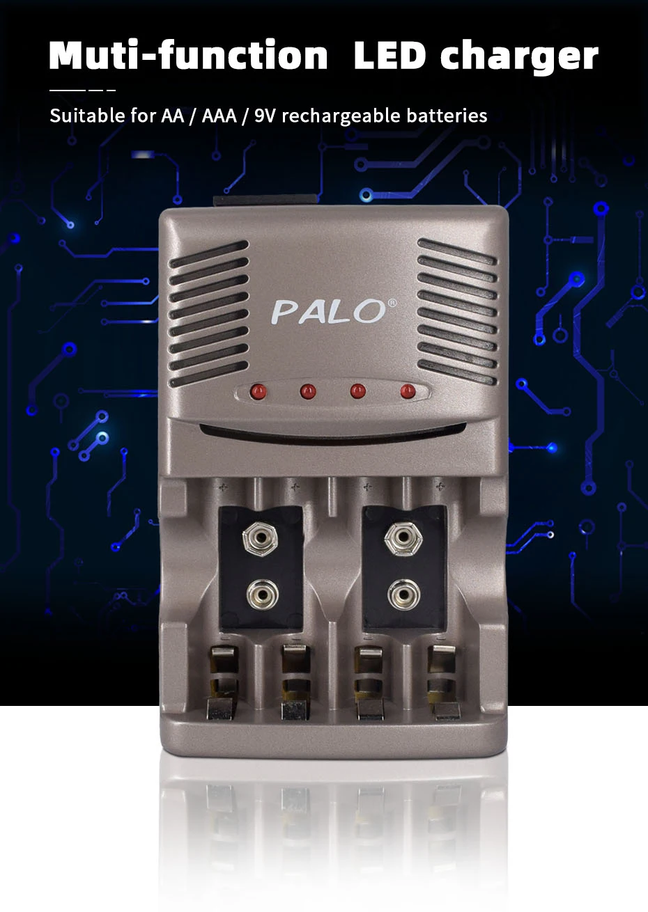 Аккумулятор PALO, 9 В, 6F22, Ni-MH, 9 В, умное зарядное устройство для никель-металлогидридных аккумуляторов 1,2 в, AA, AAA, 9 в