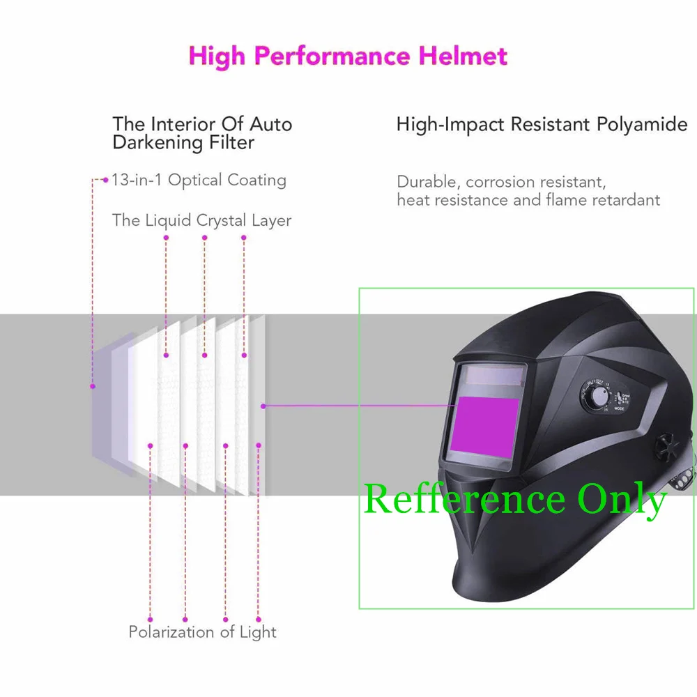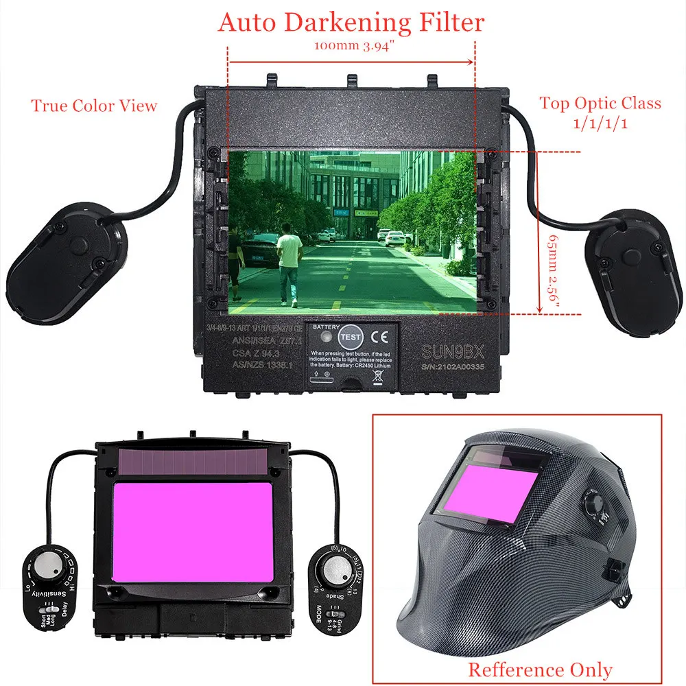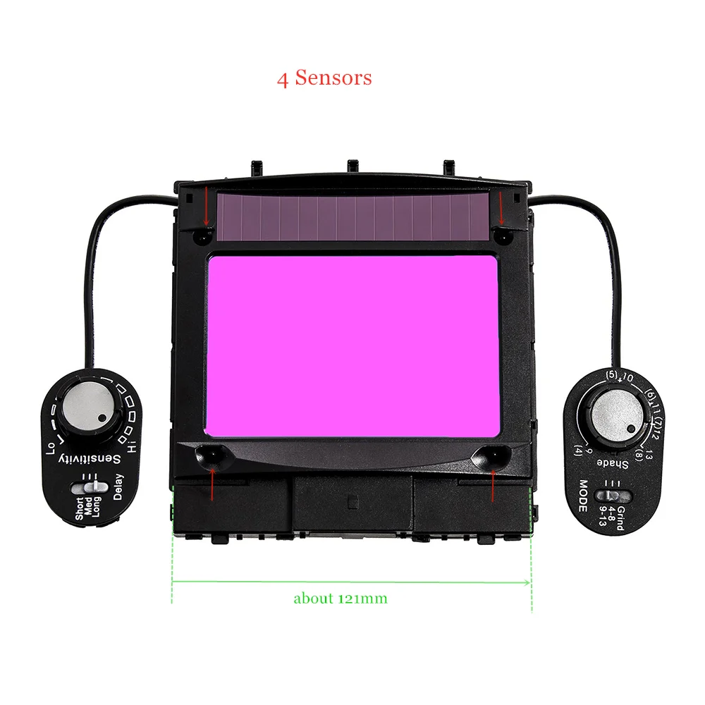 Сварочный фильтр, размер обзора 100x65 мм (3,94x2,56 дюйма), солнечные 4 датчика, автозатемнение 1111, полный диапазон оттенков 4(3)-13, для сварочных шлемов