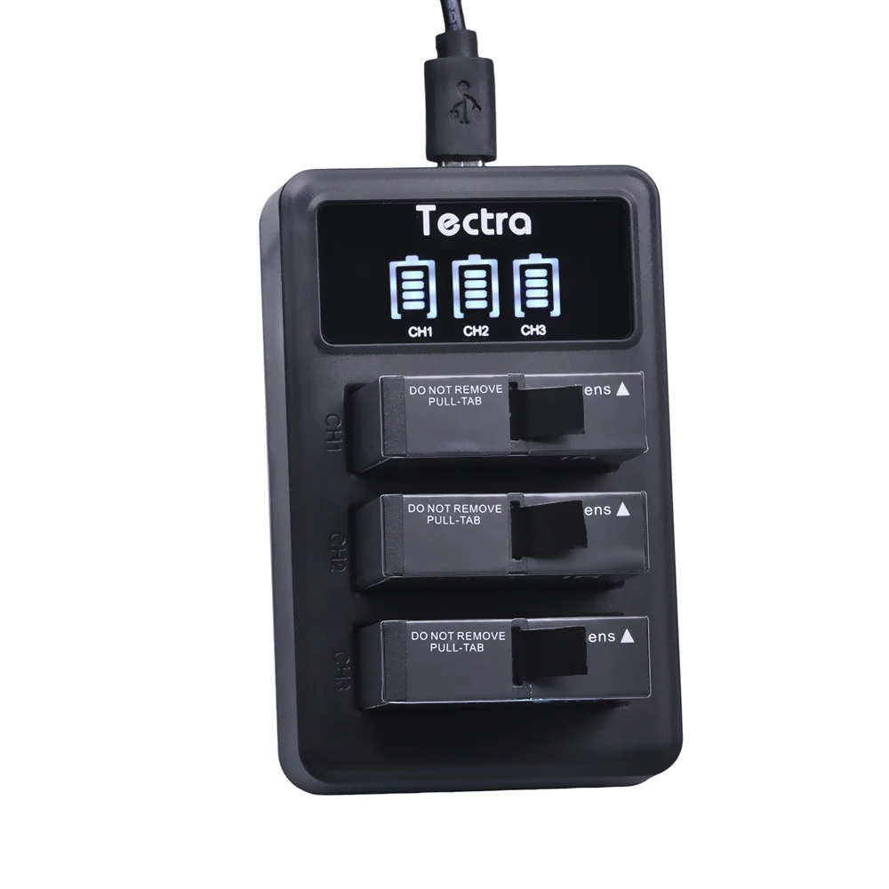 Tectra 3 шт. AZ16-1 1400 мАч перезаряжаемый аккумулятор для xiaomi yi + LED USB 3-слотовое зарядное устройство