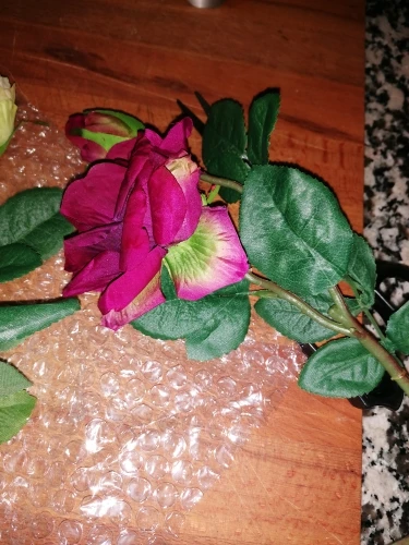 доставка в течение месяца, были сильно помяты несмотря на хорошую упаковку, стебель хорошо гнездятся, один цветок плохо проклеен, за это минус одна звезда, смотрятся правда как живые, особенно на расстоянии, силикон только с одной стороны, продавцу спасибо!