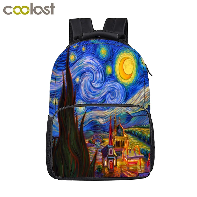 Знаменитая картина маслом Мона Лиза/рюкзак Звездная ночь для женщин и мужчин, дорожные сумки на плечо для подростков, школьный рюкзак, сумка для книг