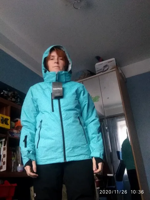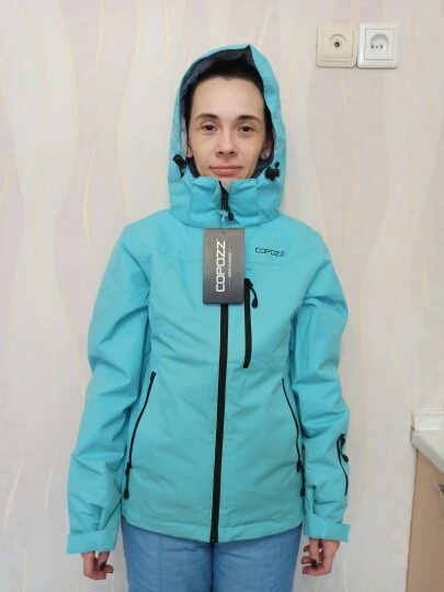 куртка понравилась, ткань достаточно плотная. брала s по своим параметрам 90-70-92, села хорошо, плотно, не так как на модели, но я так и хотела, чтоб было тепло. Куртка не очень толстая, как раз для лыж. маленький минус - запачкалась ткань на капюшоне от пластмассовых затяжек, надеюсь отстирается. не очень заметно, ими же и закрывается, и нет липучки на вставке у горла - может оттопыриваться.